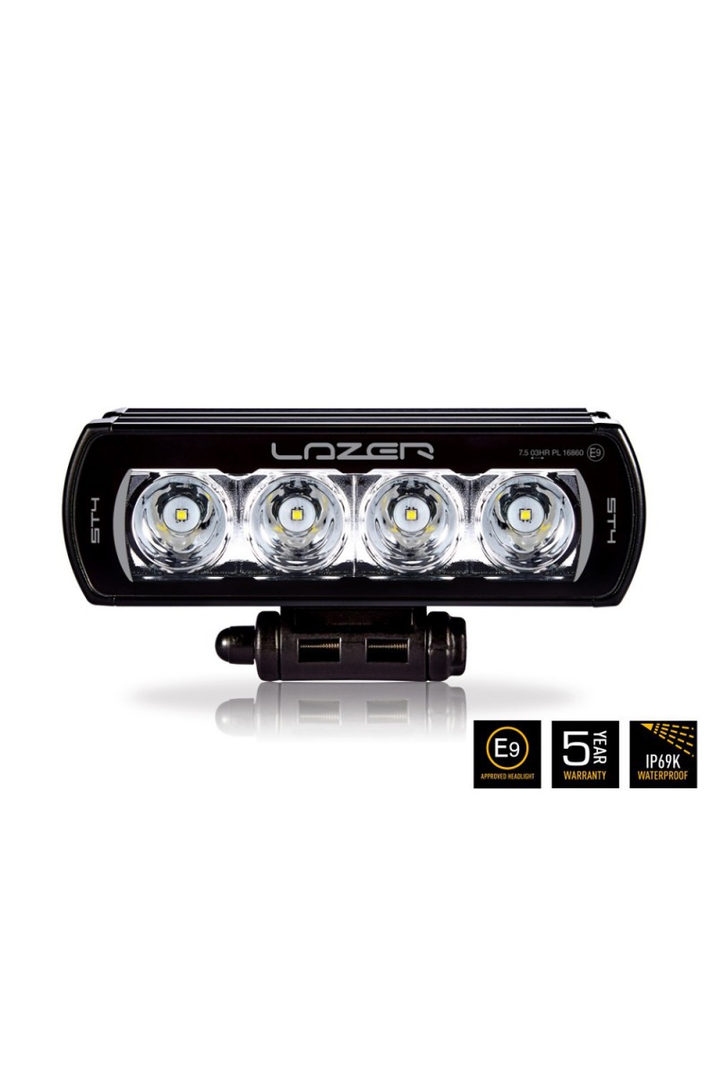 Mit einem Lichtstrom von 4.136 Lumen ist der vergleichsweise kleine Lazer Lamps ST4 Evolution-Scheinwerfer leistungsstärker als ein Xenon-Fernscheinwerfer bzw. so stark wie vier H4-Halogen-Fernscheinwerfer. Die hybride Lichtverteilung sorgt für ausgezeichnete Reichweite und breite Ausleuchtung im nahen und mittleren Entfernungsbereich und bietet dem Fahrer somit hervorragende Sichtbedingungen. Die Reichweite beträgt ca. 555 Meter.